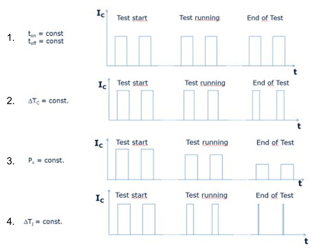 然而,業界的功率循環測試加載的方法并不統一,Impact of Test control Strategy on Power Cycling Lifetime這(zhe)篇文(wen)章中(zhong)論述了四處加載方法: