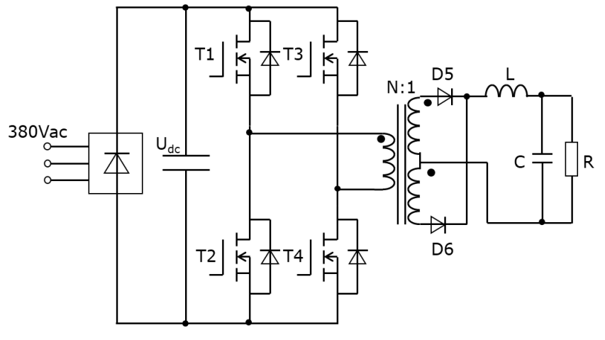 如圖1是(shi)典型的全橋(qiao)型焊(han)機逆變電路拓撲(pu),三相交流電如果經過不(bu)控整流后得(de)到大(da)約540V直流,再經過H全橋逆變成高頻(pin)交流(liu)電源,通過高頻(pin)變壓(ya)器進(jin)行隔離,變壓(ya)器二次側再(zai)進(jin)行整流(liu)得到(dao)恒定的電流(liu)輸出。