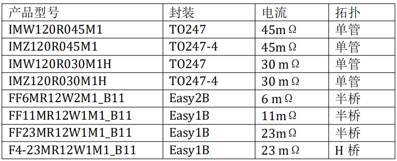 針對焊機設計(ji),這里(li)主要推薦TO-247單管產品(30mΩ和45mΩ),Easy半橋拓撲(6mΩ-45mΩ,共6個型號),以及Easy封裝的H橋拓(tuo)撲(23mΩ)。