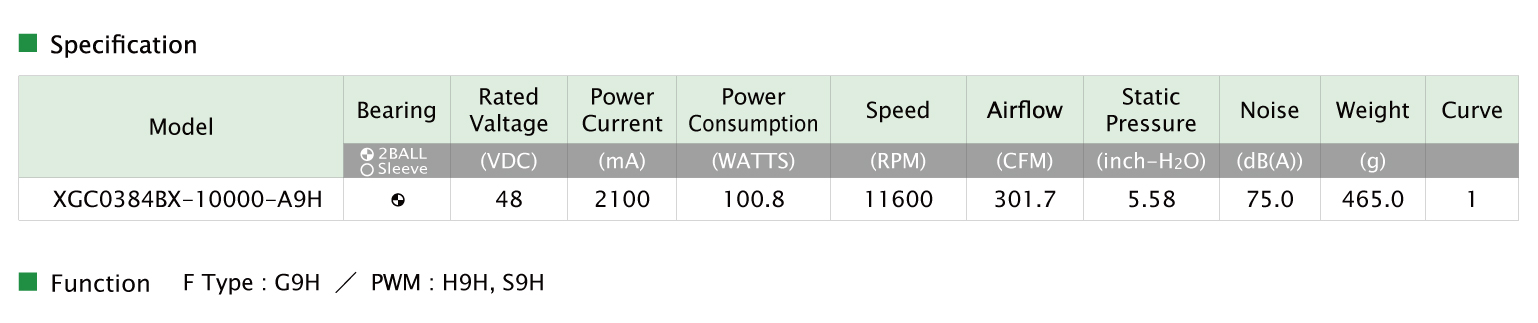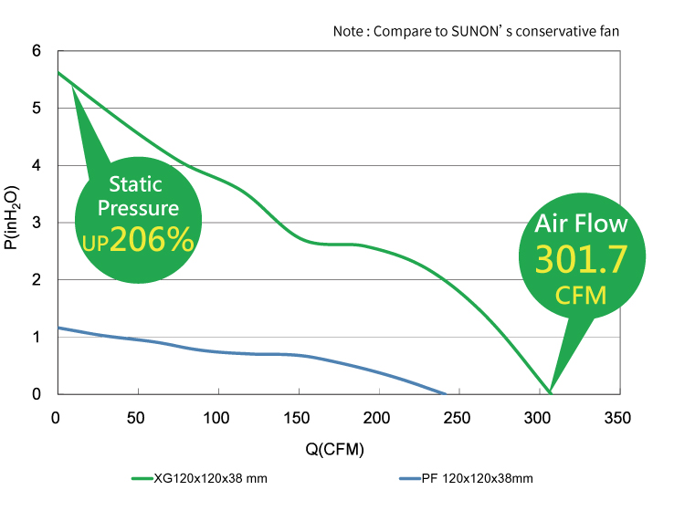建準推出高風量超大風壓48V散熱風扇,XG120x120x38 mm軸流風扇系列,採用阻振馬達搭配優化葉型與流道設計,產出301.7CFM超高風量,5.58 inch-H2O高風壓,提升最佳風扇效率高達44%;並採用金屬鋁框設計,符合高階通訊產業設備與能源設備的應用環境使用。同時XG 120x120x38 mm也提供PWM控速功能設計,可配合系統各種不同效能使用狀態作最好的散熱調控與節能設計。