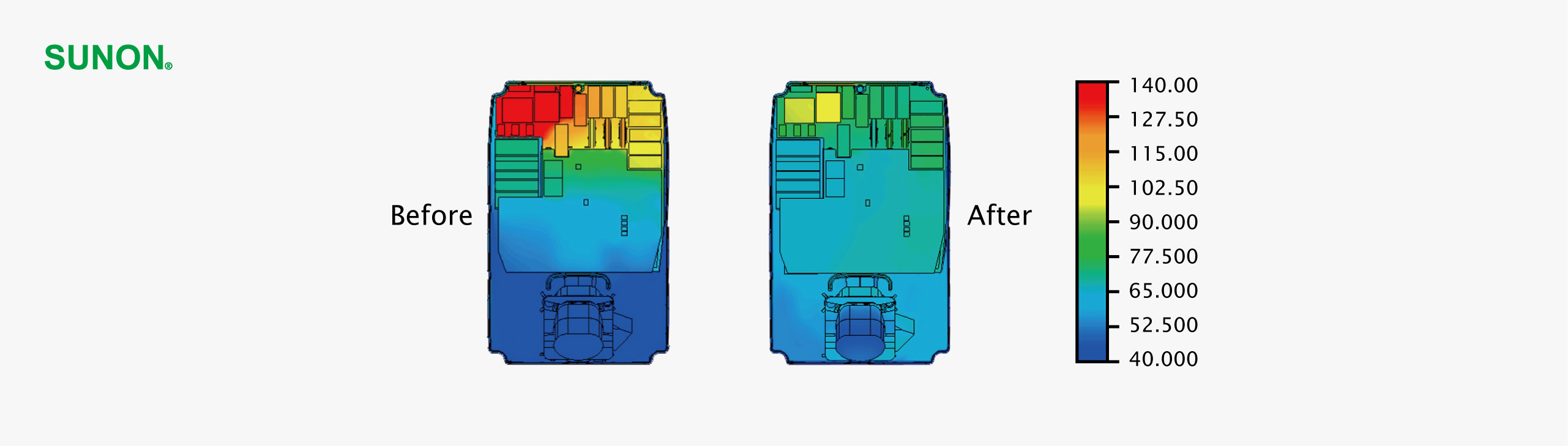 SUNON專業團隊針對車用充電樁系統結構量身打造全方位散熱解決方案,能快速均化過于集中的系統熱源,排除內部的高溫,使充電樁的運作環境維持在最佳充電效率的溫度內,并確保充電樁設施的使用安全。