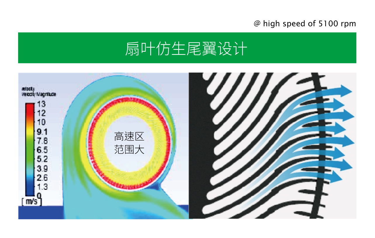 獨特尾翼設計技術,氣流高速區增大、更安靜