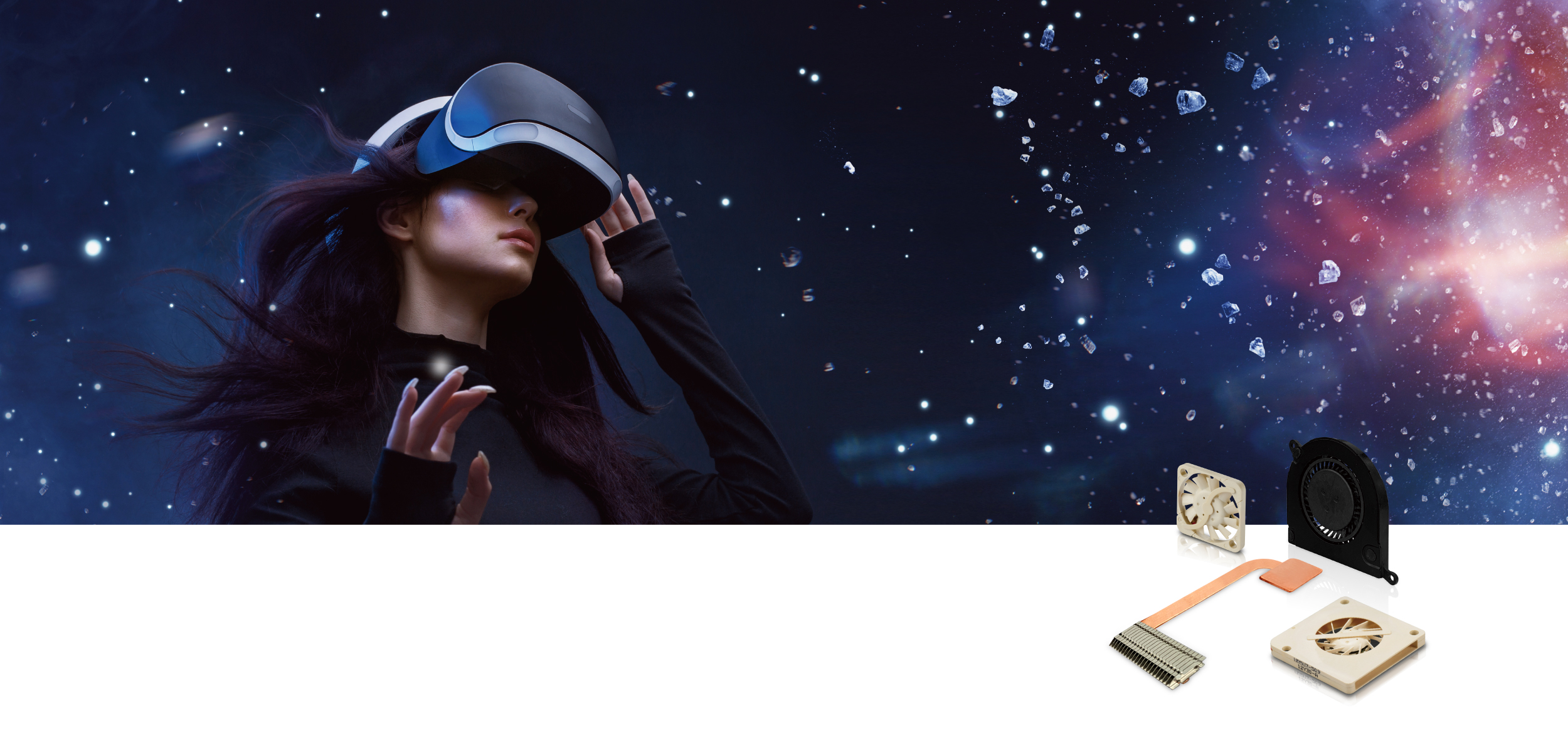 ? 小型化、輕量化冷卻模塊設計,適用于輕薄、多項運算功能的”實境”沉浸科技產品如AR, VR, MR等散熱