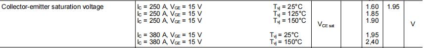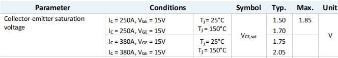 飽和壓降Vcesat=2.40V@Ic=380A,Vge=15V,Tvj=150℃