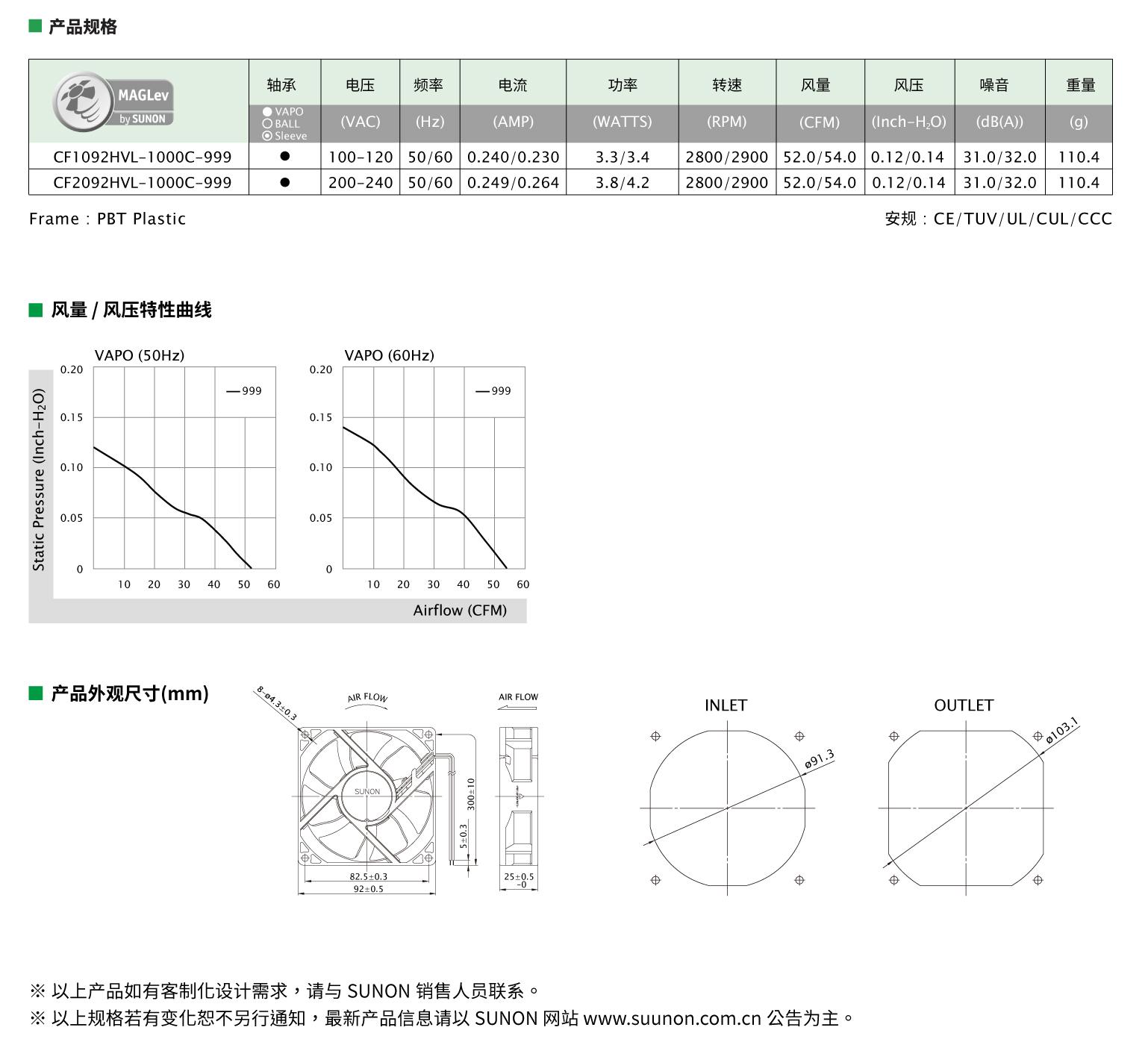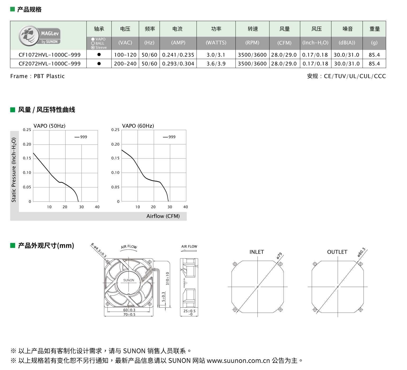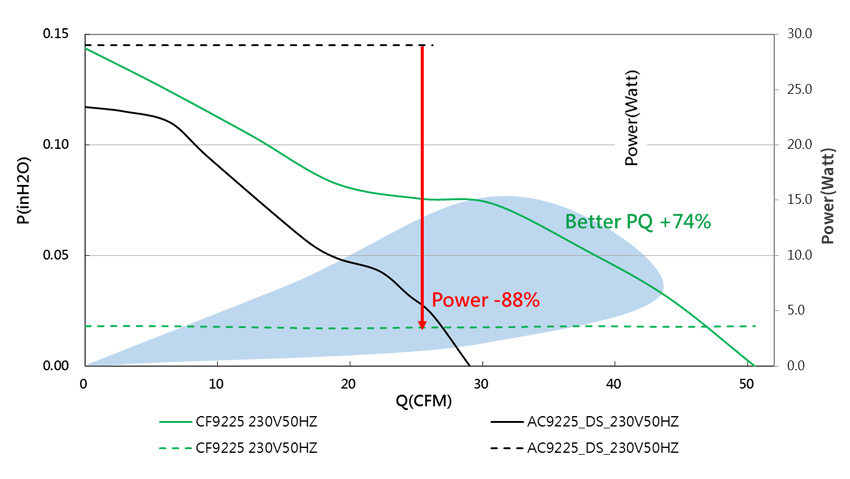 新世代MagLev EC軸流散熱風扇CF系列4尺寸:60x60x25、70x70x25、80x80x25、92x92x25,小型化設計可直接應用于交流電源輸入環境,EC風扇能源轉換效率更高,比AC風扇省電88%以上。同時,新世代MagLev EC軸流散熱風扇集結2大優勢:MagLev馬達技術和風扇扇葉的優化設計,風量更集中且更低噪音的特性散熱效果更好,另可依客戶系統使用需求客制化提供IP21防護設計,非常適合使用于能效不斷提升的商用冷凍冷藏、家電、醫療設備和機械設備系統散熱。