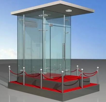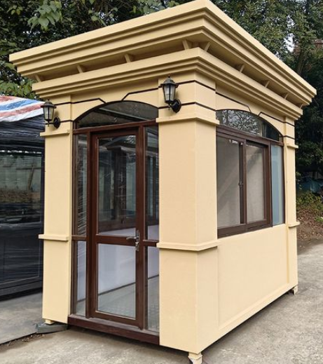 展廳門口等用來防護(hù)治安人員不被風(fēng)吹雨淋臨時(shí)活動(dòng)房。